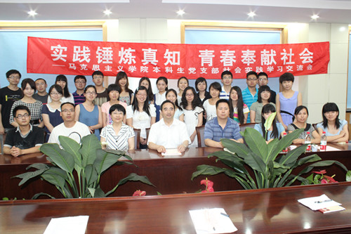 分党委对黄校长的到来表示感谢,鼓励广大同学牢记黄校长的教诲,能够抓住社会实践这一受教育、长才干、作贡献的主要途径和有效平台,增长见识,为社会贡献青春的力量。